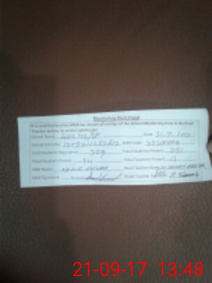 | Monitoring Date: 21-09-2017 | Start Time: 21-09-2017 12:57 PM | End Time: 21-09-2017 01:51 PM | Name of MEA: NA**** AH**** (R**** | |