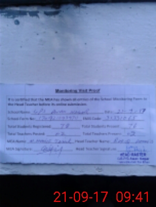 | Attendance Register | Head Teacher | MEA with School | Visit Proof |