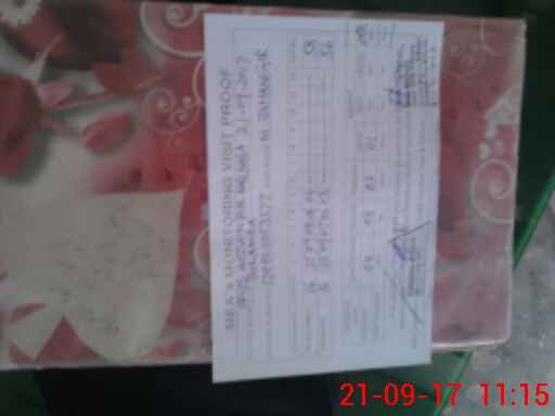 | Monitoring Date: 21-09-2017 | Start Time: 21-09-2017 10:10 AM | End Time: 21-09-2017 11:18 AM | Name of MEA: Mu**** Ja**** | |