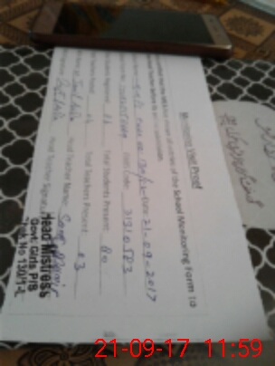 | School Visited by School Health & Nutrition Supervisor (No. of Visits) | 1 | Name1: | Muhammad Younas | Name2: | Nil |