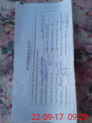 | Attendance Register | Head Teacher | MEA with School | Visit Proof |