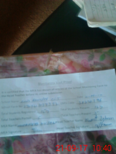 | Attendance Register | Head Teacher | MEA with School | Visit Proof |