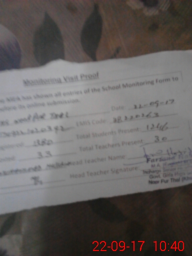| EMIS Code: 38220263 | Name of School: GGHS NOOR PUR THAL | |||