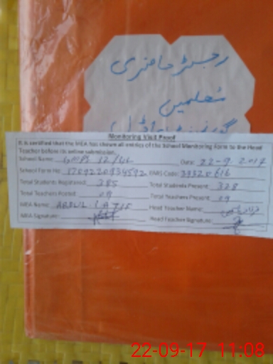 | Attendance Register | Head Teacher | MEA with School | Visit Proof |