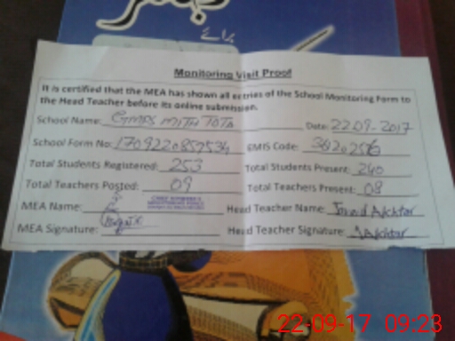 | EMIS Code: 36120256 | Name of School: GMPS MITTHA TOTA SHUJA ABAD | |||