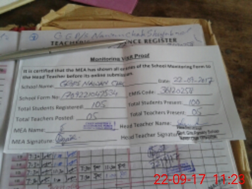 | Attendance Register | Head Teacher | MEA with School | Visit Proof |
