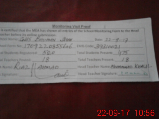 | EMIS Code: 39310021 | Name of School: GHS BHUMAN SHAH | |||
