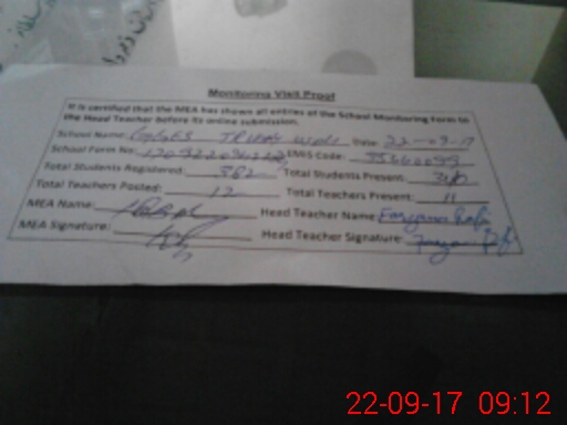 | Attendance Register | Head Teacher | MEA with School | Visit Proof |