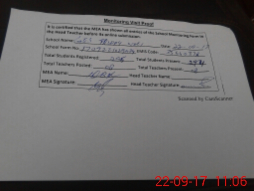 | Attendance Register | Head Teacher | MEA with School | Visit Proof |
