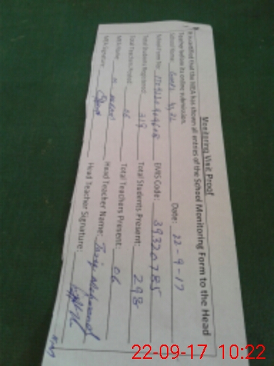 | Attendance Register | Head Teacher | MEA with School | Visit Proof |
