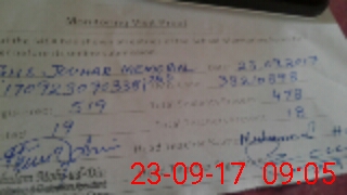 | Monitoring Date: 23-09-2017 | Start Time: 23-09-2017 07:53 AM | End Time: 23-09-2017 09:06 AM | Name of MEA: HA**** GH**** MO**** UDDI**** | |