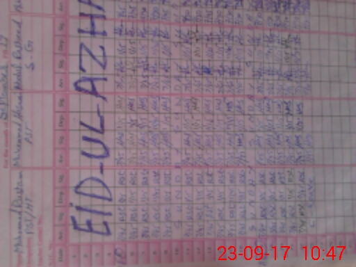 | CNIC | Full Name | Designation | R/C | Absence During Last Calender Month |