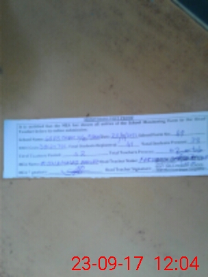 | Monitoring Date: 23-09-2017 | Start Time: 23-09-2017 11:40 AM | End Time: 23-09-2017 12:13 PM | Name of MEA: MU**** NA**** | |