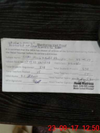 | EMIS Code: 31310860 | Name of School: GGHS JUNIOR MODEL KHANPUR | |||