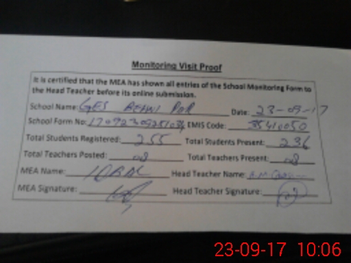 | Attendance Register | Head Teacher | MEA with School | Visit Proof |