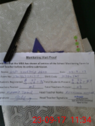 | Attendance Register | Head Teacher | MEA with School | Visit Proof |