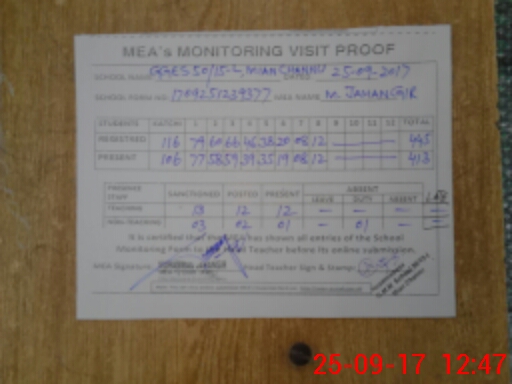 | EMIS Code: 36430098 | Name of School: GGES 50/15-L, MIAN CHANNU | |||