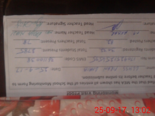 | Certified that this School was Inspected by the Undersigned MEA/DMO Today and the Information Stated Above is as Per Record. | |||||