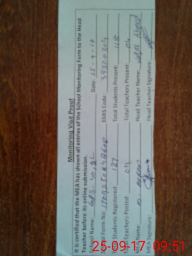 | Attendance Register | Head Teacher | MEA with School | Visit Proof |