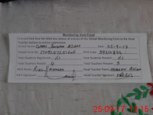 | EMIS Code: 39310844 | Name of School: GPS JUGIAN AZAM | |||