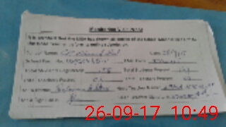 | Monitoring Date: 26-09-2017 | Start Time: 26-09-2017 10:32 AM | End Time: 26-09-2017 10:52 AM | Name of MEA: Sa**** Ak**** | |