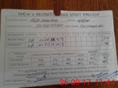| Attendance Register | Head Teacher | MEA with School | Visit Proof |