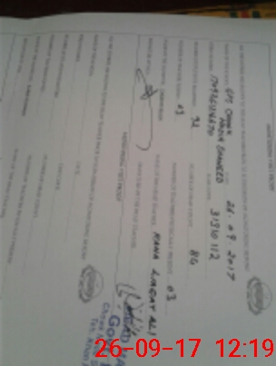 | Monitoring Date: 26-09-2017 | Start Time: 26-09-2017 12:02 PM | End Time: 26-09-2017 12:22 PM | Name of MEA: Za**** Hu**** | |