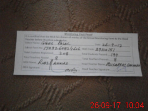 | Attendance Register | Head Teacher | MEA with School | Visit Proof |