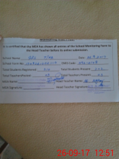 | Name: AT**** MA**** Designation: (School Headmaster's/Headmistress's) PST Phone/Cell Number: 03**** |