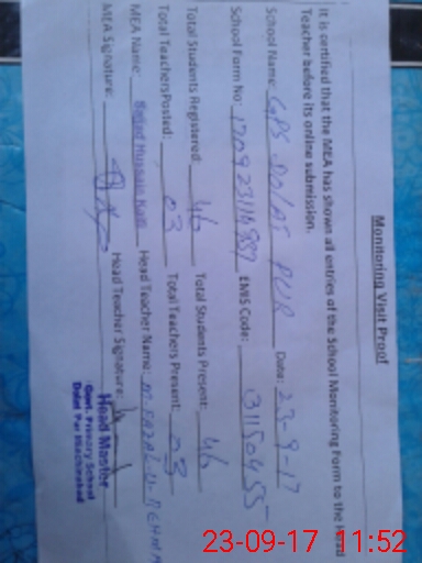 | Monitoring Date: 23-09-2017 | Start Time: 23-09-2017 11:27 AM | End Time: 23-09-2017 12:05 PM | Name of MEA: Sa**** Hu**** Ka**** BN**** 17 | |