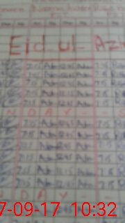| CNIC | Full Name | Designation | R/C | Absence During Last Calender Month |