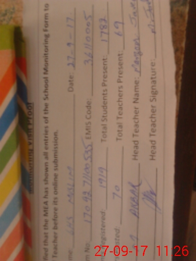 | Attendance Register | Head Teacher | MEA with School | Visit Proof |
