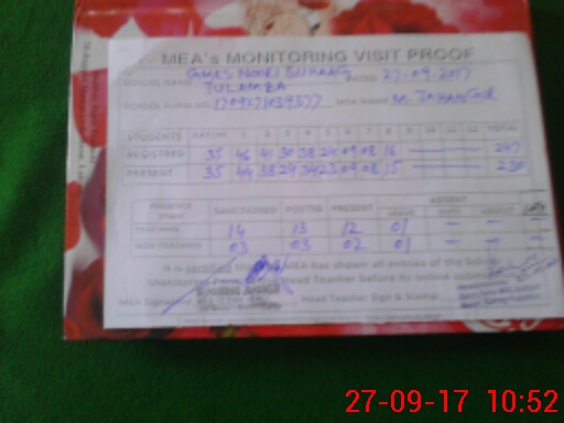 | Certified that this School was Inspected by the Undersigned MEA/DMO Today and the Information Stated Above is as Per Record. | |||||