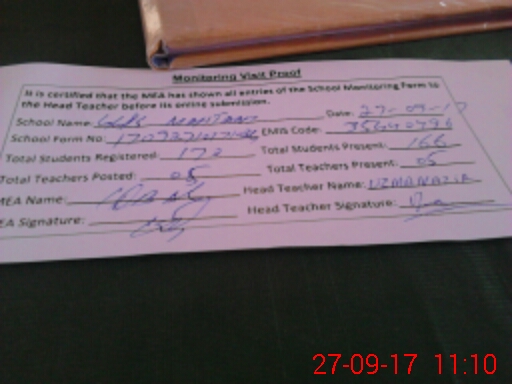 | Attendance Register | Head Teacher | MEA with School | Visit Proof |