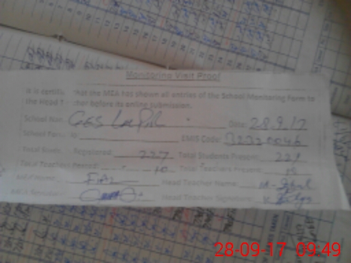 | Attendance Register | Head Teacher | MEA with School | Visit Proof |