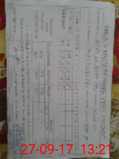| Monitoring Date: 27-09-2017 | Start Time: 27-09-2017 12:13 PM | End Time: 27-09-2017 01:24 PM | Name of MEA: Z-**** Zu**** Al**** (C**** ex**** 31**** | |