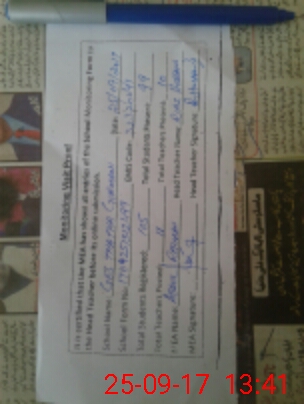 | School Visited by School Health & Nutrition Supervisor (No. of Visits) | Name1: | TAHIR BASHIR | Name2: | Nil | |