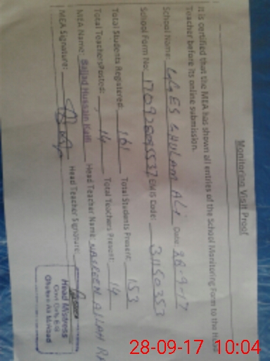 | Certified that this School was Inspected by the Undersigned MEA/DMO Today and the Information Stated Above is as Per Record. | |||||