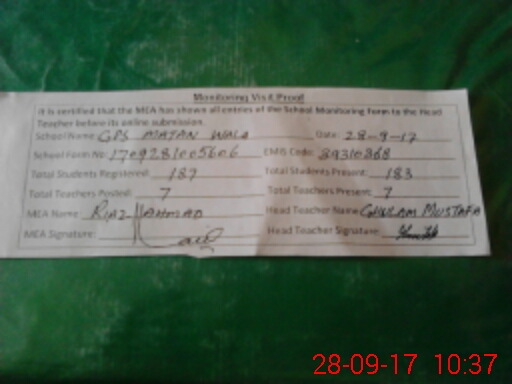 | EMIS Code: 39310368 | Name of School: GPS MATAN WALA | |||