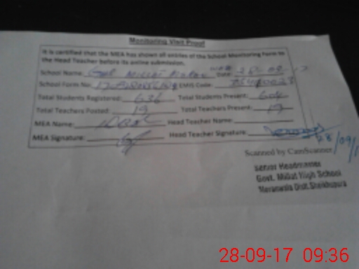 | EMIS Code: 35440023 | Name of School: GHS MILLAT MORAN WALA | |||