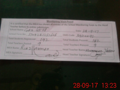 | EMIS Code: 39310092 | Name of School: GES 45/SP KHOTI PUR | |||