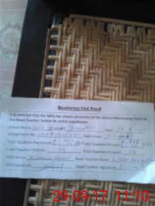 | Attendance Register | Head Teacher | MEA with School | Visit Proof |