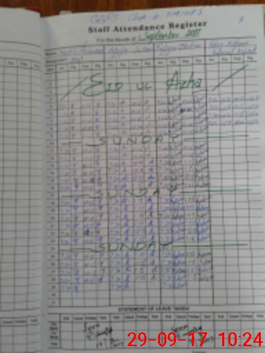 | CNIC | Full Name | Designation | R/C | Absence During Last Calender Month |