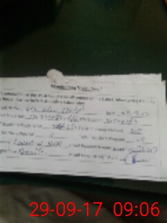 | Monitoring Date: 29-09-2017 | Start Time: 29-09-2017 08:42 AM | End Time: 29-09-2017 09:08 AM | Name of MEA: Mu**** Iz**** UlHa**** | |