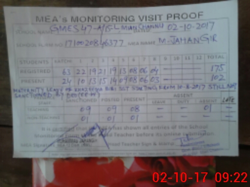 | Certified that this School was Inspected by the Undersigned MEA/DMO Today and the Information Stated Above is as Per Record. | |||||