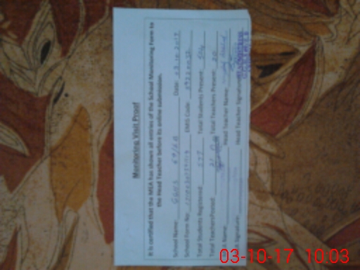 | Attendance Register | Head Teacher | MEA with School | Visit Proof |