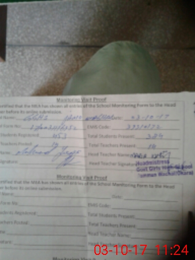 | Attendance Register | Head Teacher | MEA with School | Visit Proof |