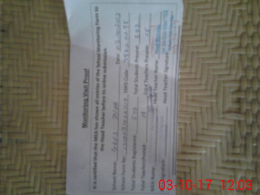 | Attendance Register | Head Teacher | MEA with School | Visit Proof |
