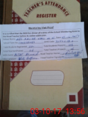 | Attendance Register | Head Teacher | MEA with School | Visit Proof |