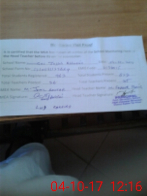 | Attendance Register | Head Teacher | MEA with School | Visit Proof |